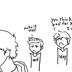 Bad day?" "Every day is a bad day here." "Eh, this place isnt't so terrible." "How are you always cheerful?" "Alcohol," he says with a sideways grin.